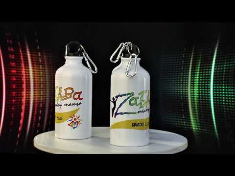 Спортивная металлическая бутылка белого цвета с чёрной крышкой и карабином. Легкий и прочный, металлический корпус.